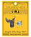 Affix ye these Knight Who Says "Ni!" pins enamelèd - upon raiment or pack of the back - then stride ye forth, demanding sacrifice... of shrubbery.