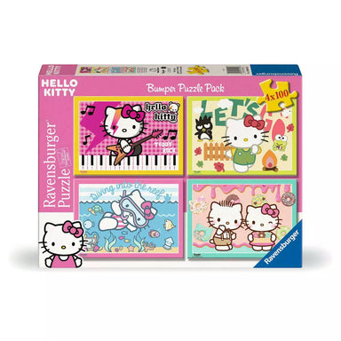 Four Unique 100 Piece Hello Kitty Puzzles Each Puzzle Measures 14" x 10.25" Ages: 5+ Made in Germany