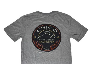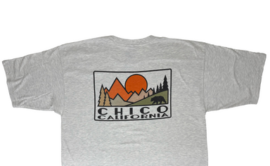 These fun graphic T-shirt is perfect for showing off your love of Chico! A fun line and color-block design on the surrounding mountains and forests...