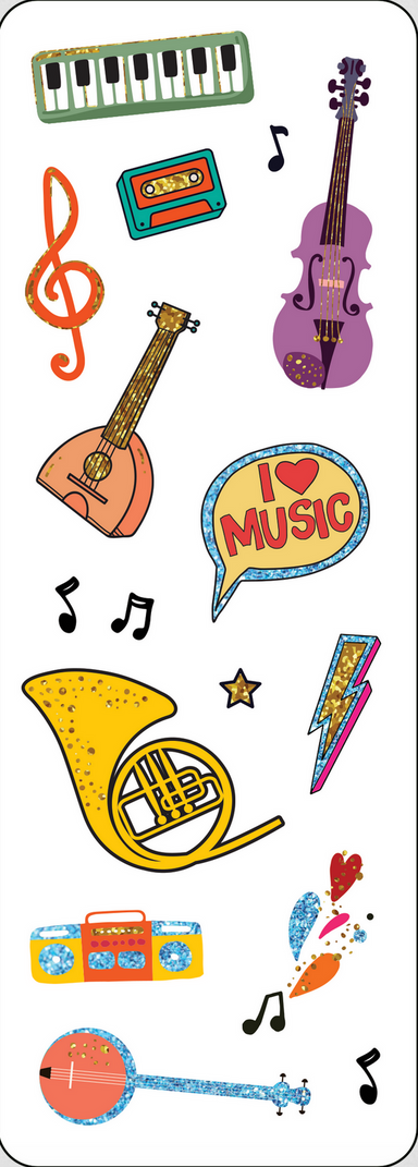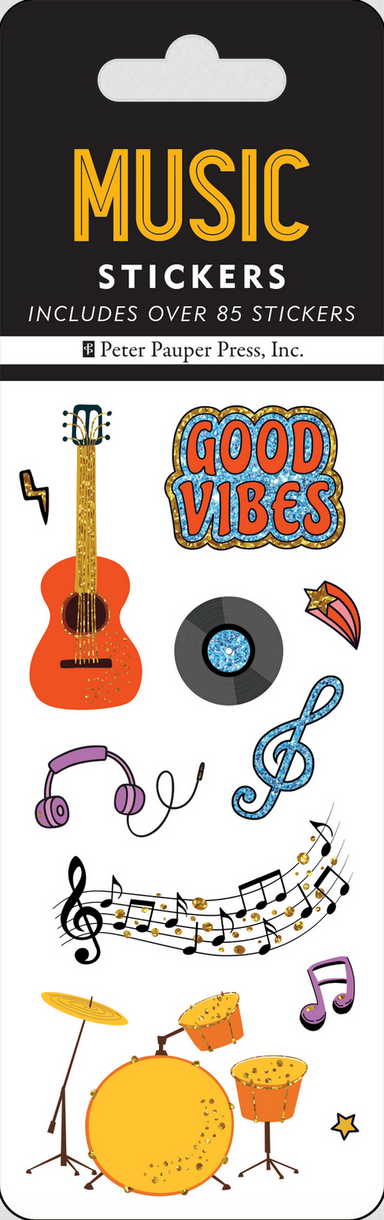 Fun music-themed sticker set is packed with good vibes and more than 85 colorful stickers! Stickers feature drums, guitars, keyboards, musical note...