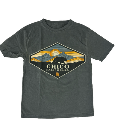 These fun youth graphic T-shirt is perfect for showing off your love of Chico! A amusing and flowery take on the mountains and sunset that are an i...